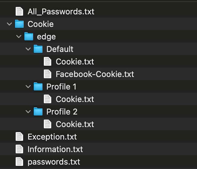 - pwn Stealer: pwn Stealer is a basic Windows infostealer malware primarily targeting user passwords and authentication cookies. In many of the pwn Stealer logs we have recaptured, the malware appears to specifically highlight any captured cookies for Facebook.com, pulling them out into separate Facebook-Cookie