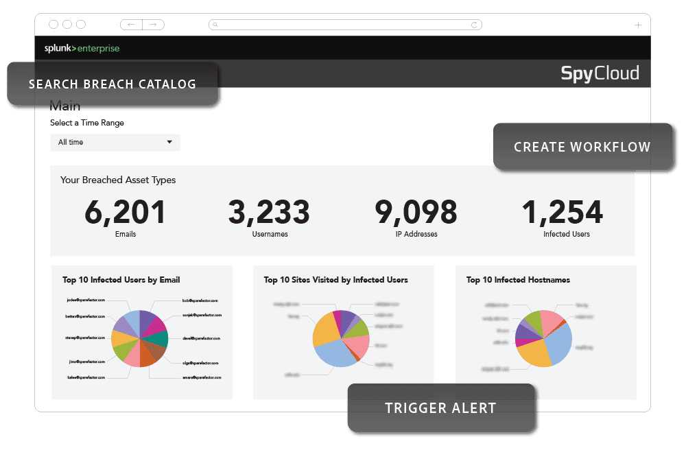 SpyCloud’s integration with Splunk delivers end-to-end visibility of an organization’s breach, malware, and phishing exposures and the information necessary to take action quickly – reducing the risk that stolen authentication data results in breaches, account takeover, ransomware, or online fraud.